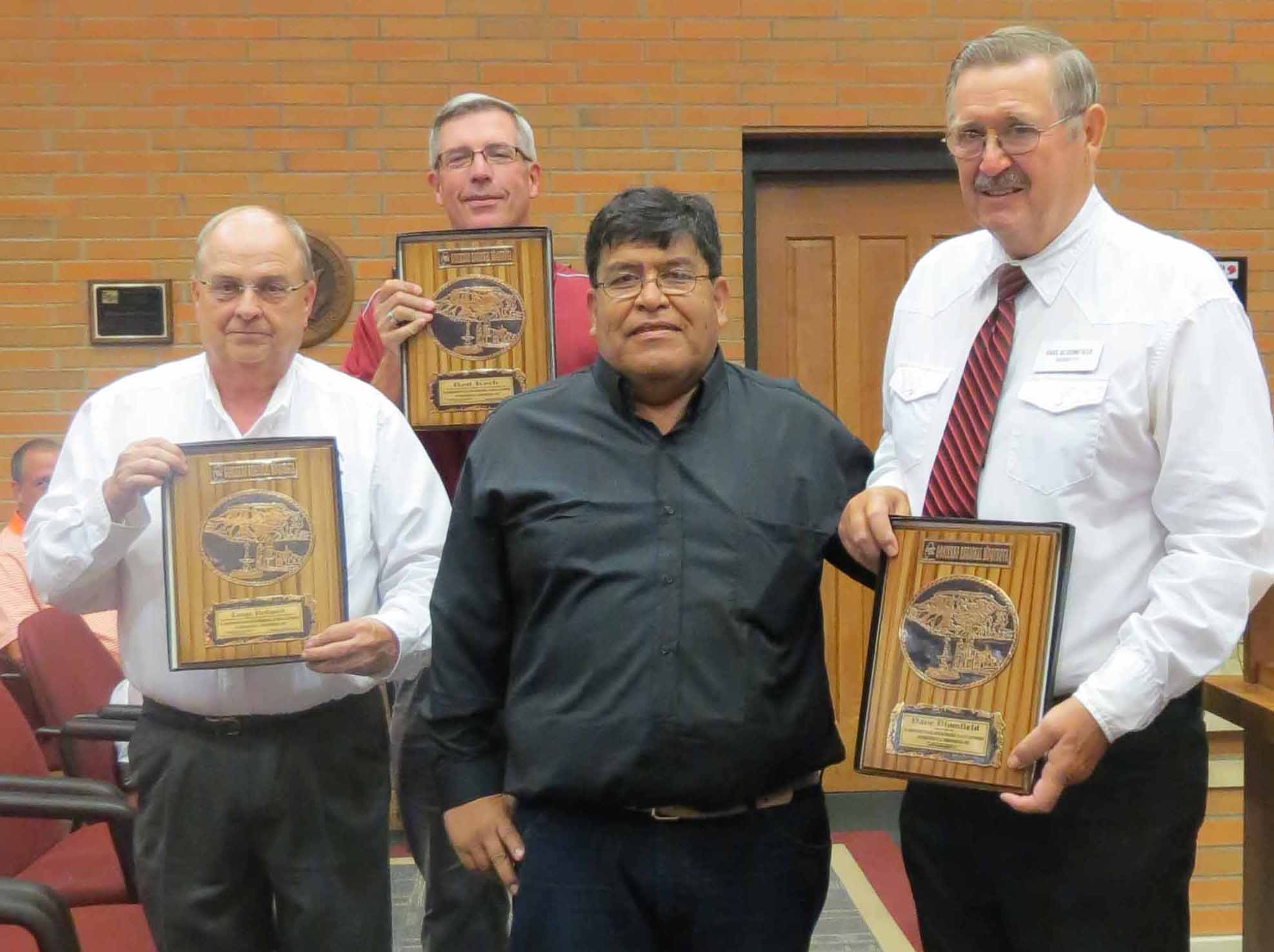 En la foto de izquierda a derecha Lance Hedquist Administrador de la Ciudad de South Sioux City; Rod Koch Alcalde de South Sioux City, Rolando Luna y Dave Bloomfield, Senador de Nebraska. Fotos por Sandra Gutiérrez