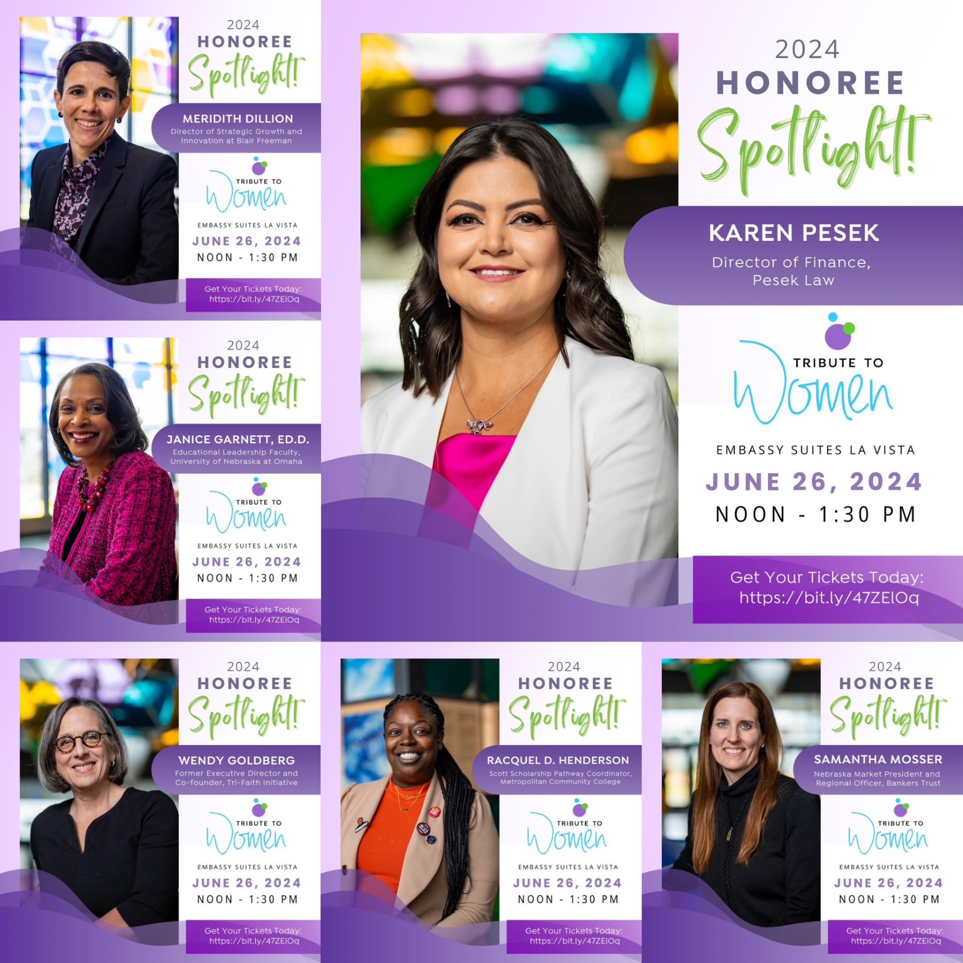 Entre las distinguidas homenajeadas se encuentra Karen Pesek, directora de finanzas en la firma de abogados Pesek Law. Pesek ha sido reconocida por su liderazgo y contribuciones significativas a la comunidad legal de Omaha, siendo un modelo a seguir para muchas mujeres en el ámbito financiero y legal, además de sus acciones altruistas y programas de ayuda como el de True Potential Schoolarship que beca a jóvenes inmigrantes para que continúen con sus estudios. La lista de homenajeadas incluye también a Meredith Dillion, Directora de Crecimiento Estratégico e Innovación en Blair Freeman, cuya visión y estrategia han llevado a la empresa a nuevos horizontes de éxito. Janice Garnett, ED.D., de la Facultad de Liderazgo Educativo de la Universidad de Nebraska en Omaha, es otra de las galardonadas, celebrada por su dedicación a la formación de futuros líderes educativos.