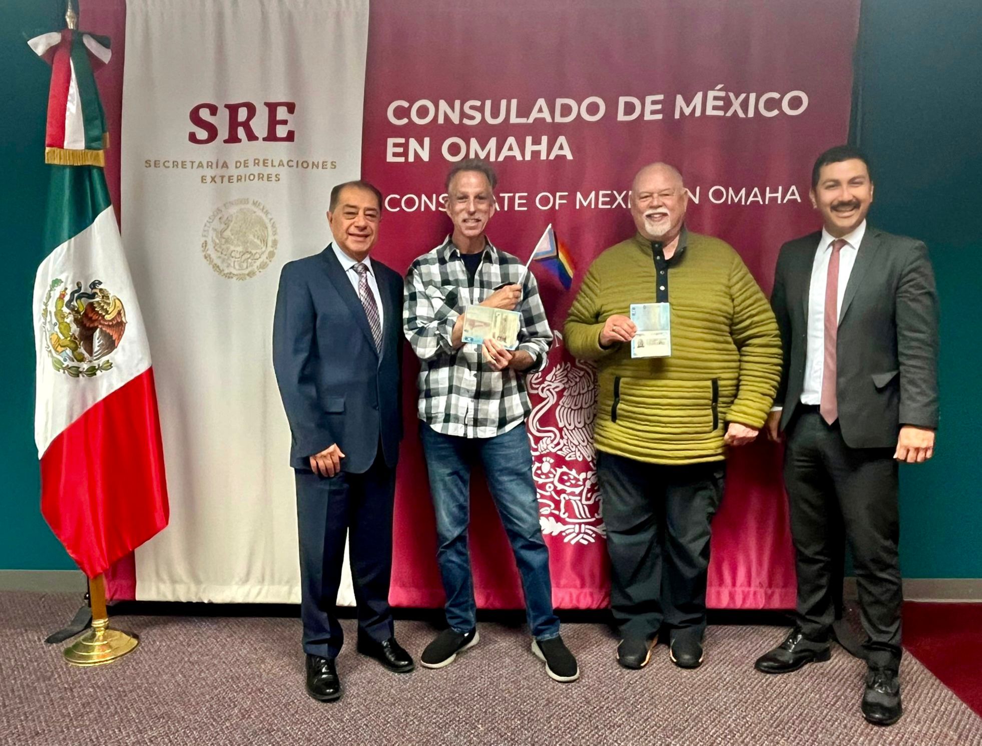 Durante el Mes del Orgullo, el Consulado de México en Omaha celebró un momento especial y significativo al entregar visas de residencia a Carl y Stephen, una pareja que ha compartido más de 30 años de vida juntos. En su jubilación, ambos han decidido dar el siguiente paso en su historia: establecerse en México y hacer de este país su nuevo hogar.