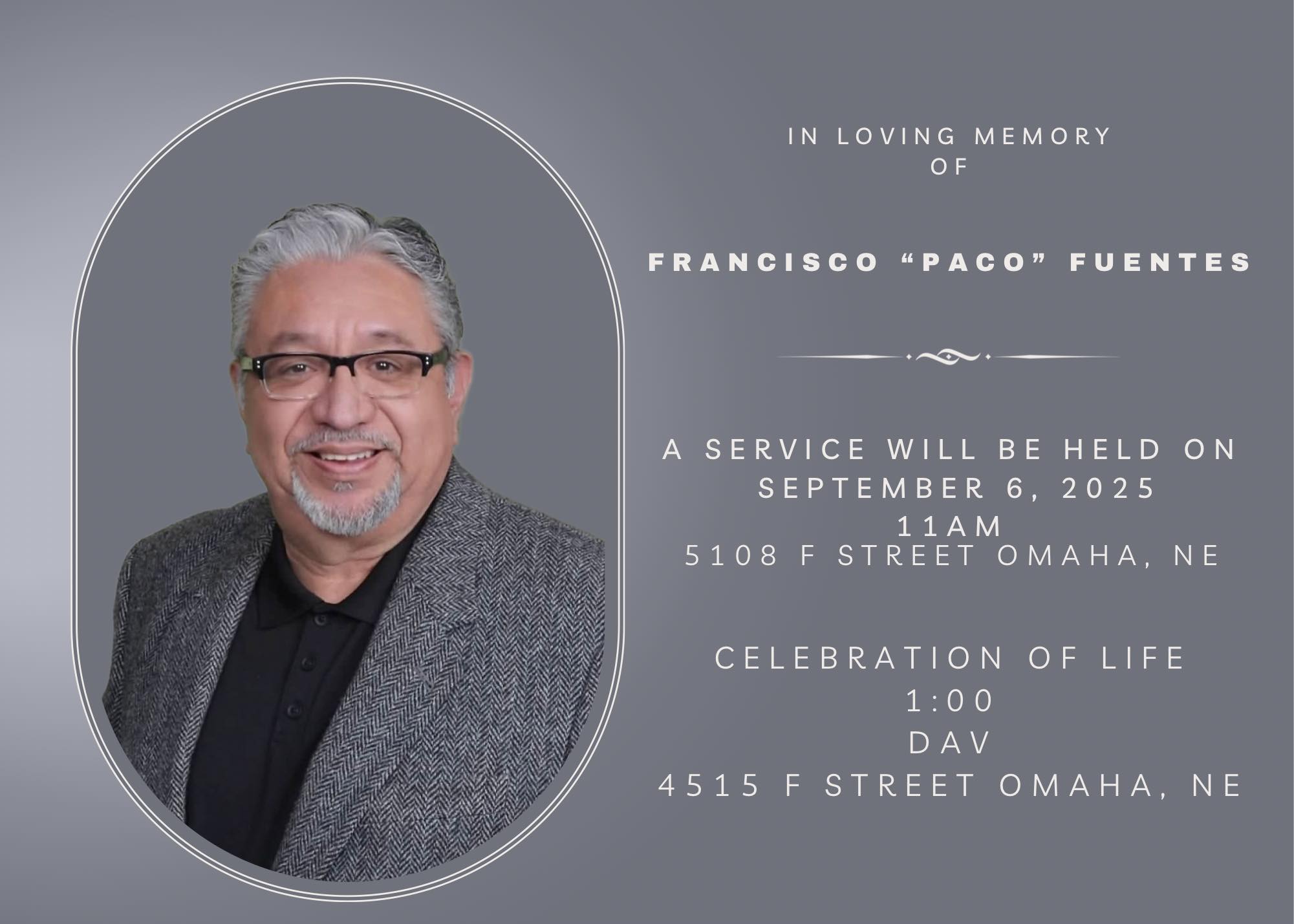 Omaha, NE. Nacido en México, Paco llegó a Omaha siendo apenas un niño junto a su familia, donde su padre, un talentoso artesano canastero, buscaba mayores oportunidades para sus hijos. Creció en el sur de Omaha, profundamente influenciado por mentores y organizaciones comunitarias, especialmente The Boys Club, que se convirtió en su segundo hogar durante la juventud. Se graduó de South High School en Omaha en 1977.